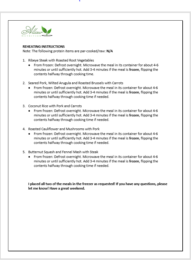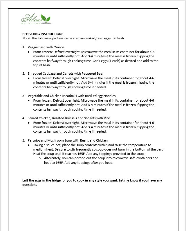Sample Menus Vegan client with some food prep involved. Weight loss client with some prep involved. Busy Mom who wants to prep just a little. Celiacs client with fully cooked meals for the microwave. Low sodium Client with fully prepped meal ready for the microwave Get in Touch!